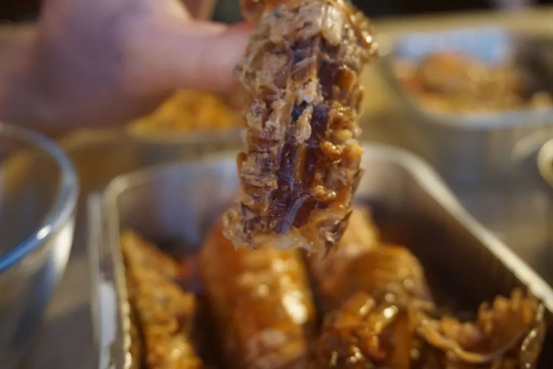在醬汁中浸潤了一段時間,晶瑩的蝦肉洗飽了湯汁,咬一口能感覺到很有嚼勁。