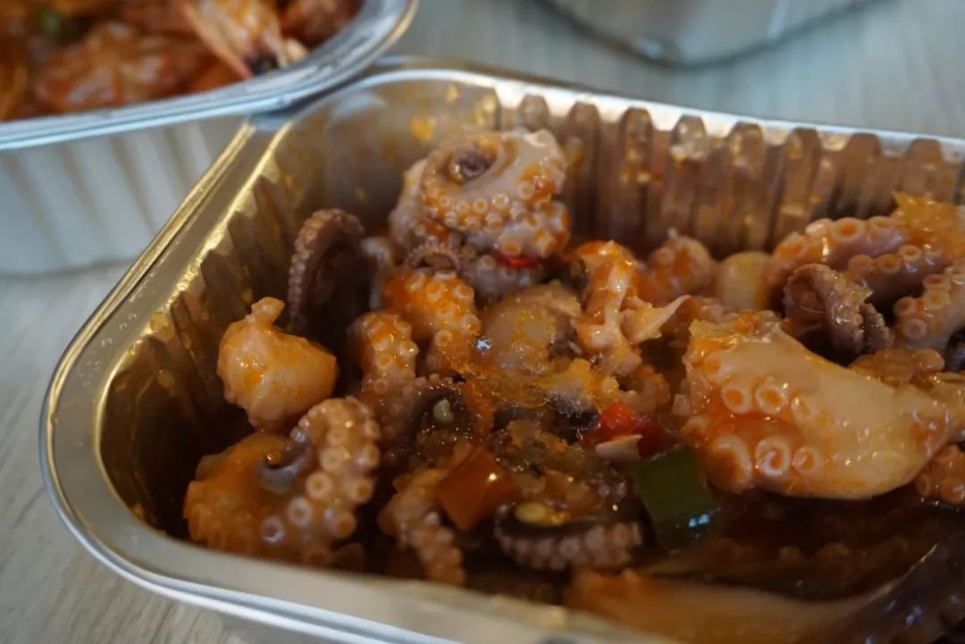 裹著湯汁的魷魚咬起來嘎嘣脆,一口一個的停不下來。